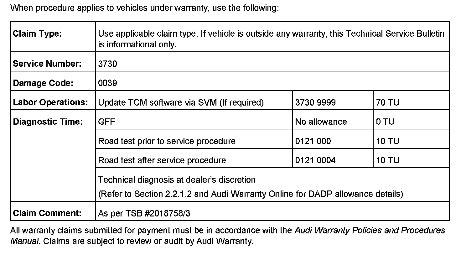 ^ TSB 2011722 Vehicle shudders when accelerating from a standstill.