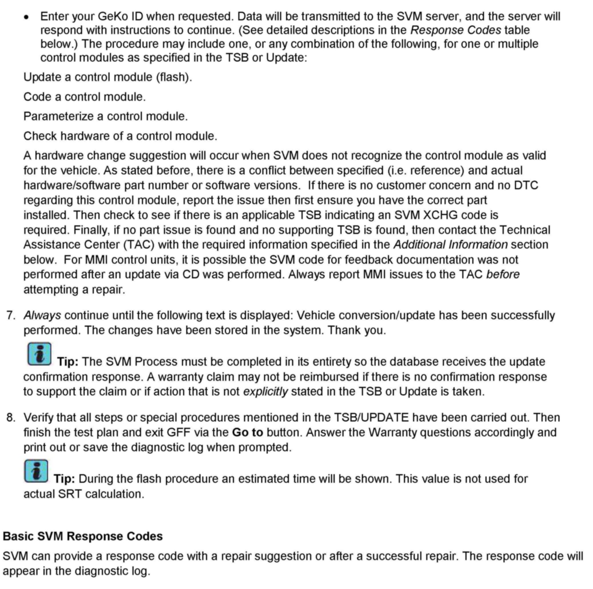 3. Update the TCM (J217) using SVM action code as listed in the table above if necessary.