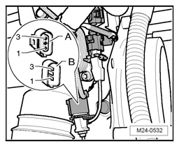 - Using multimeter V.A.G 1526 B or equivalent, check Engine Speed (RPM) Sensor G28 for short circuit between terminals 1 + 2 as well as 1 + 3.