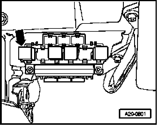 - Location for Secondary Air Injection (AIR) pump relay -J299-.