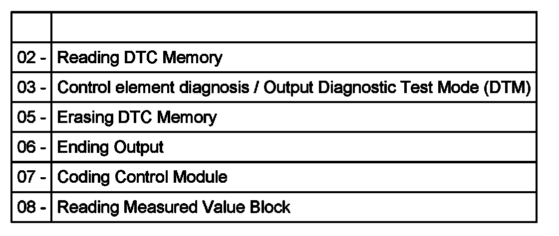 List of Selectable Functions, 01V, 5 Spd. A/T AWD