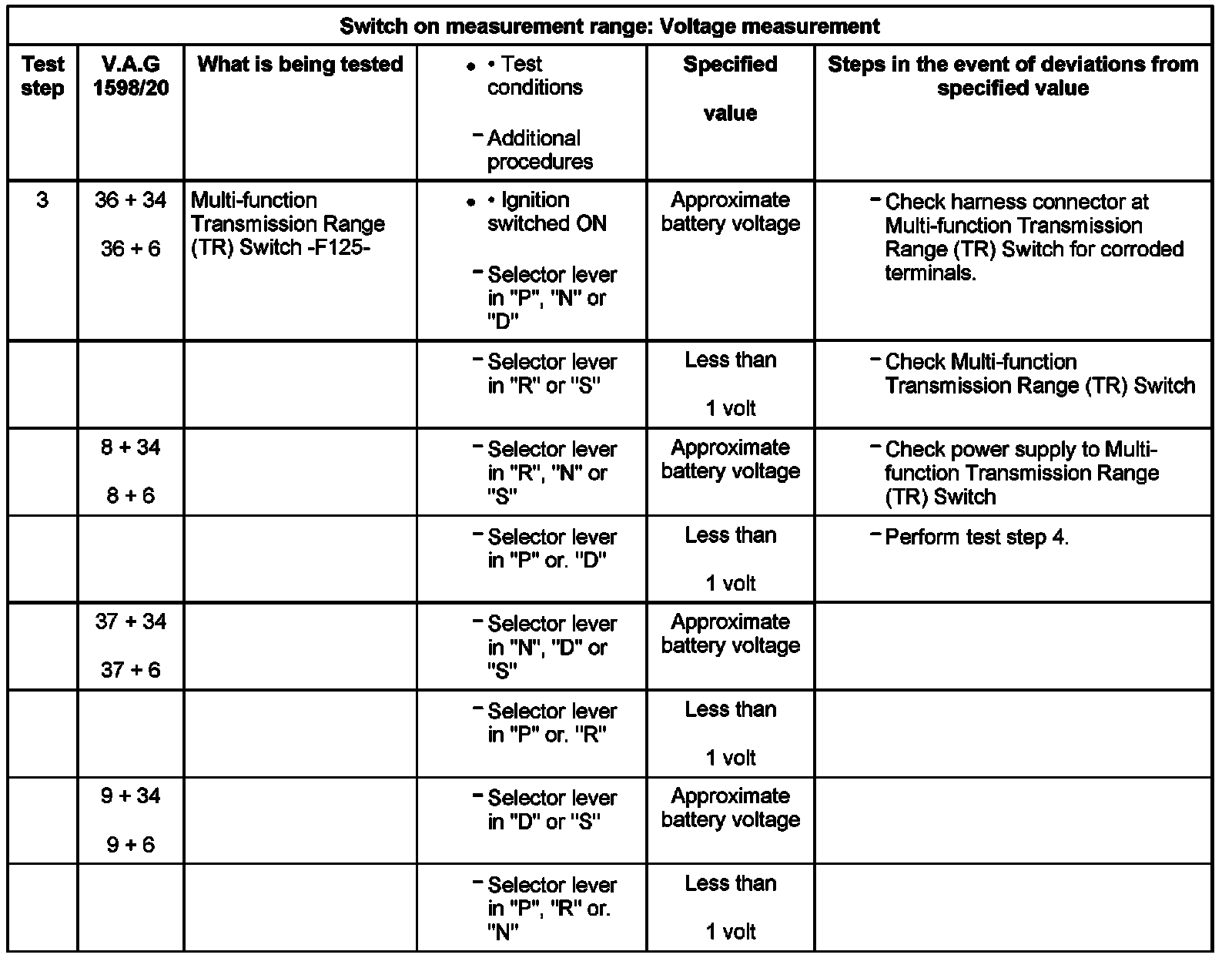 Test Table, Test Step 3: