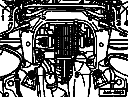 - Install and tighten new hex bolts - 1 -, - 2 -, - 3 - and - 4 -.