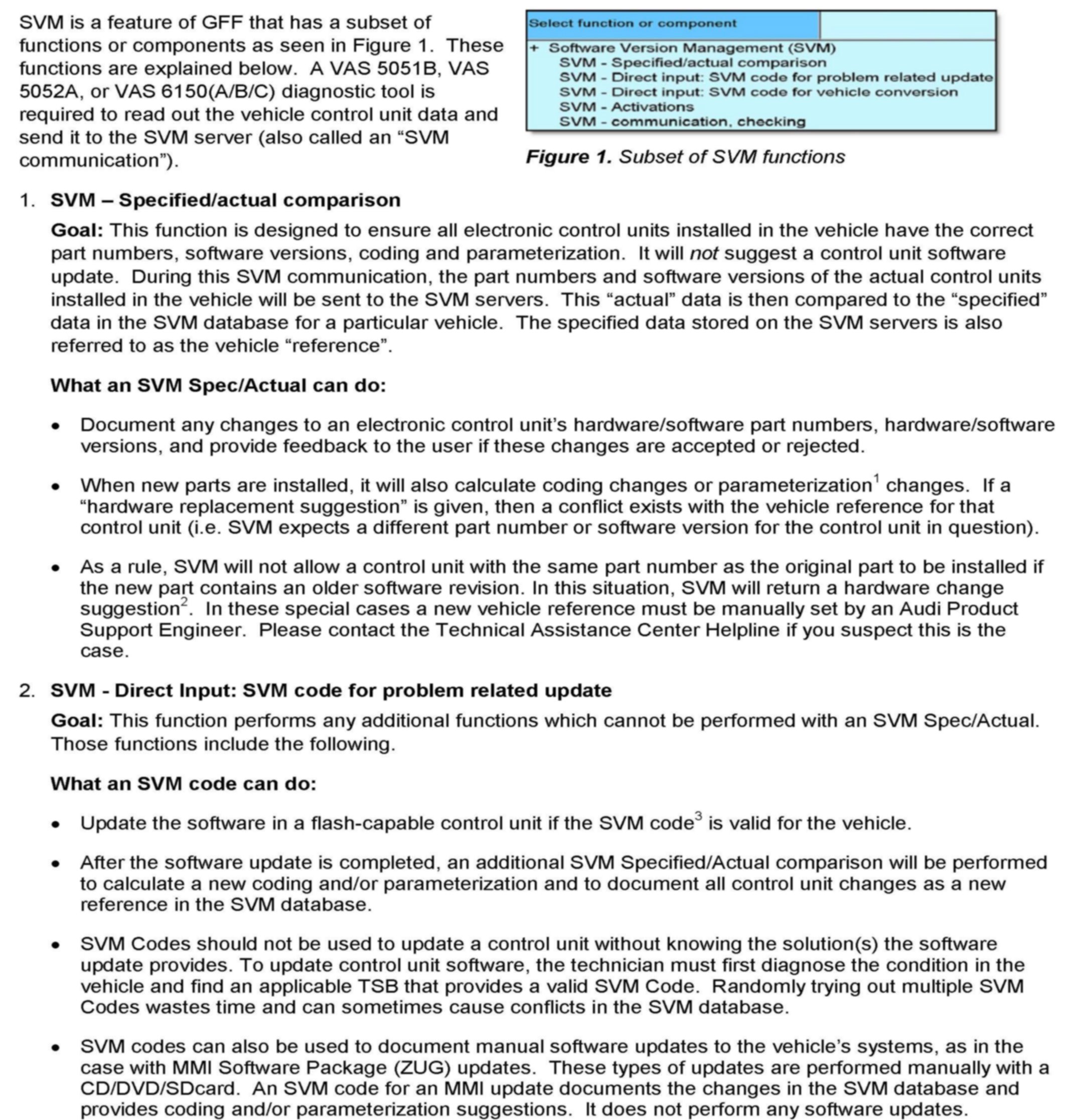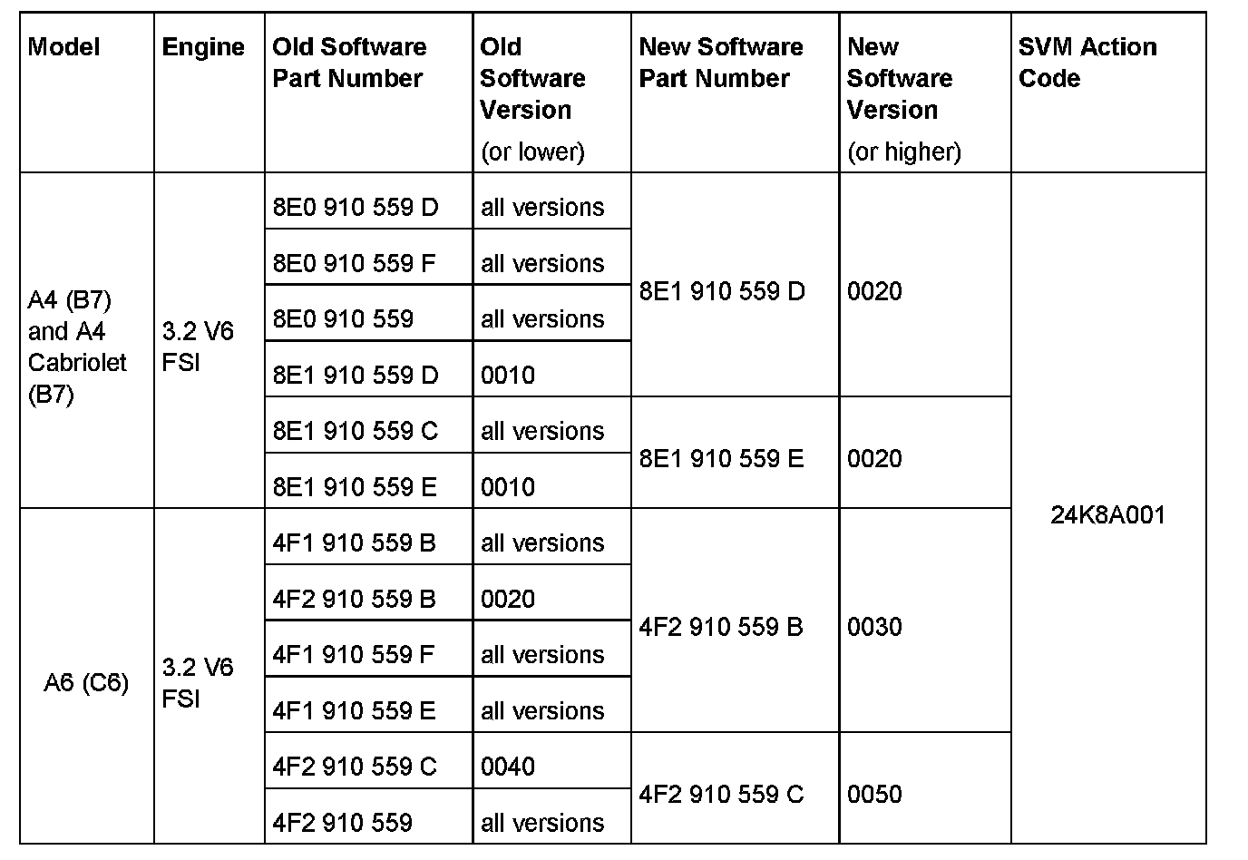 3. Update the ECM (J623) using the SVM action code as listed in the table above if necessary.