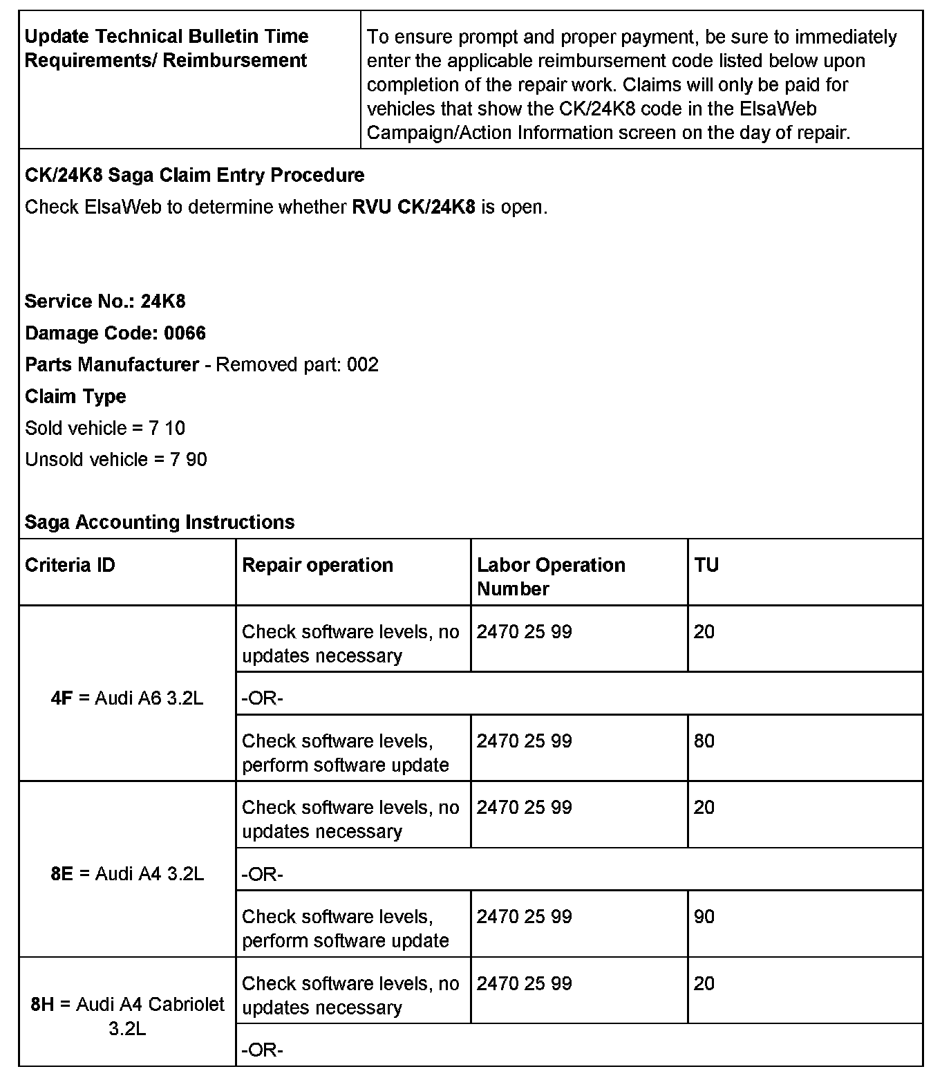 ^ Procedure is valid only for vehicles that show the CK / 24K8 code in the ElsaWeb Campaign/Action Information screen on the day of repair.