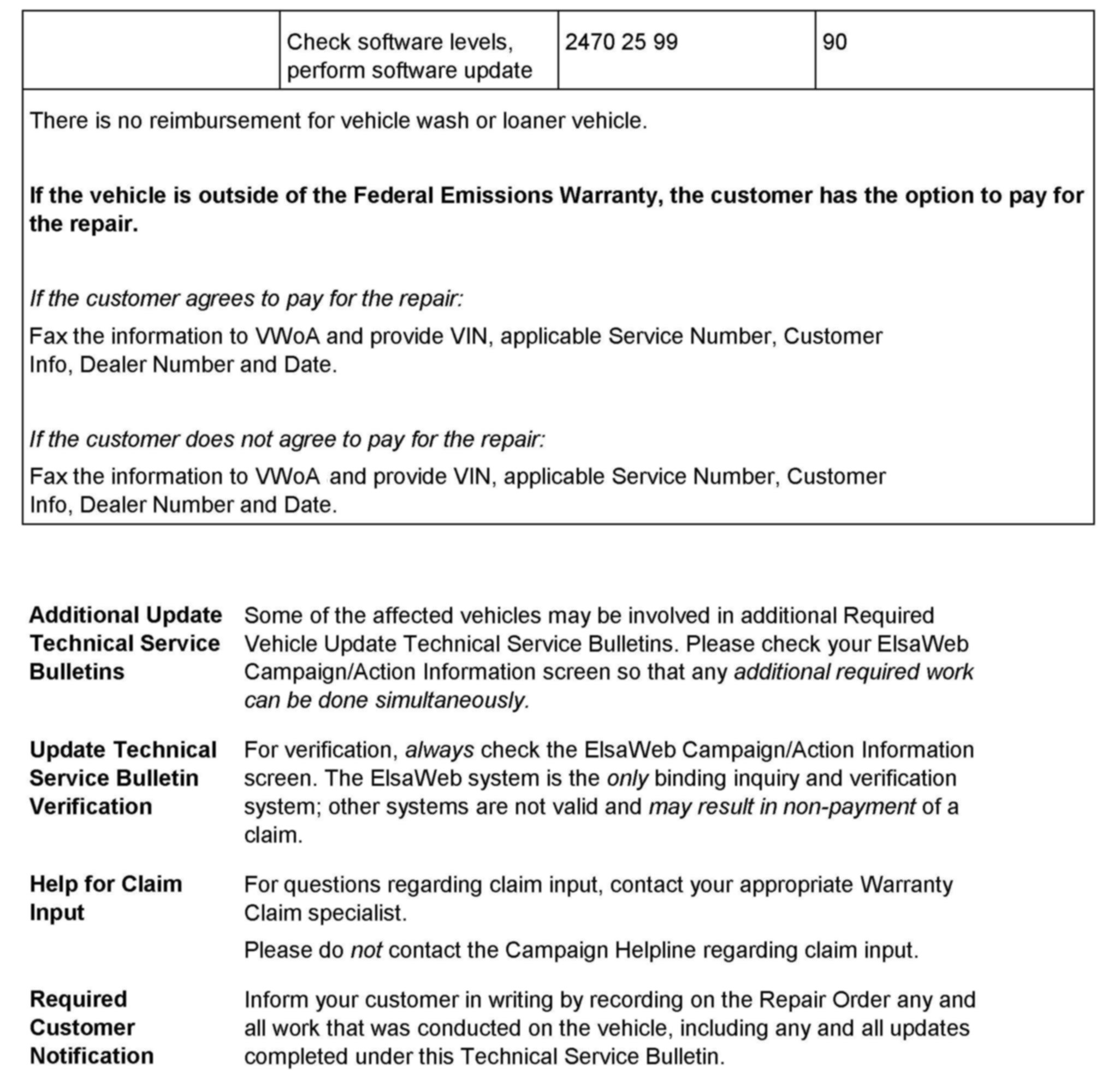 ^ Procedure must be performed within the allotted time frame stated in this Technical Service Bulletin.