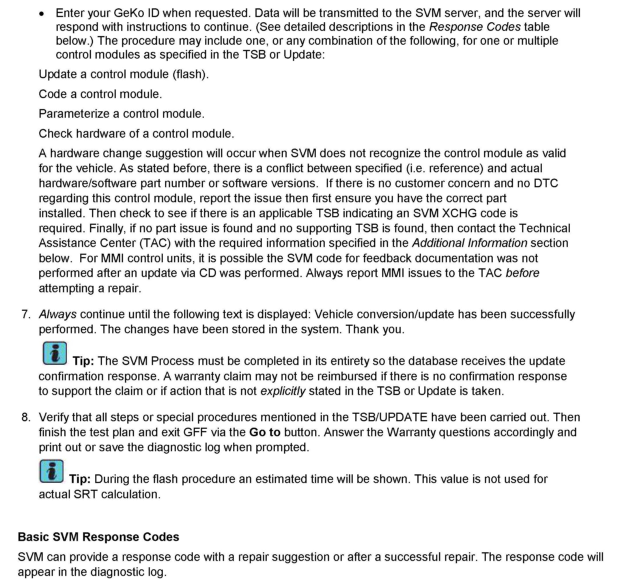 2. Follow all instructions in the attached TSB 2011732 00 Software Version Management (SVM), operating instructions.