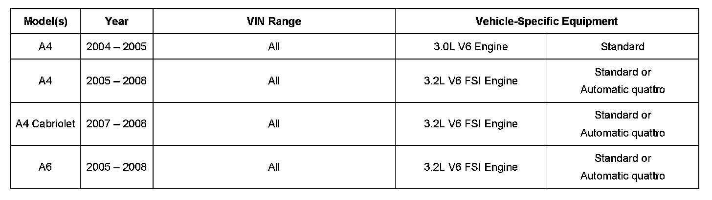 All parts and service references provided in this TSB are subject to change and/or removal. Always check with your Parts Department and service manuals for the latest information.