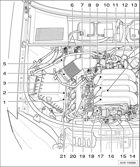 - After replacement, adapt throttle valve control module in operating mode "Guided Fault- Finding" in "Adapting throttle valve control module"