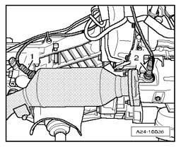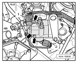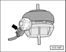 - Only for vehicles with automatic transmission: On left and right engine mounts - arrow -.