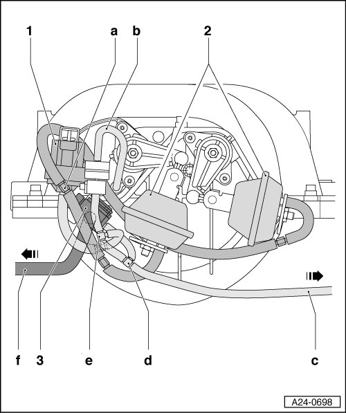 d - T-connector for vacuum supply from Intake Air Switch-over valve (N335) and low pressure reservoir
