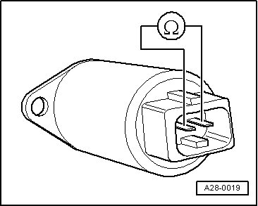 - Perform a resistance measurement between terminals on solenoid valve using portable multimeter (VAG1526).