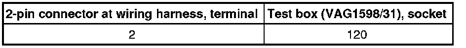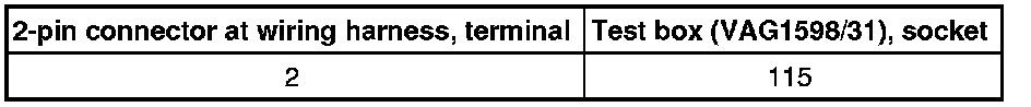 - Connect test box (VAG1598/31) at wiring harness to Engine Control Module (ECM), do not connect ECM.