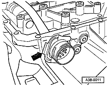 - Disconnect electrical connector on transmission. To do this, turn plug counterclockwise - arrow -.