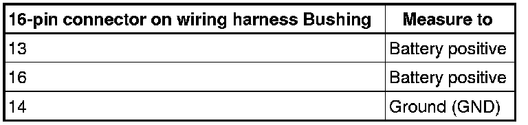 - Connect multimeter as follows to vehicle wiring harness 16-pin connector for voltage measurement.