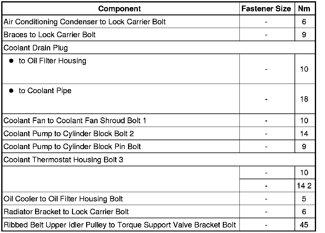 • 3 For bolt clarification refer to - items 1 and 2 - in => [ Coolant Pump and Thermostat Assembly Overview ] Coolant Pump and Thermostat Assembly Overview