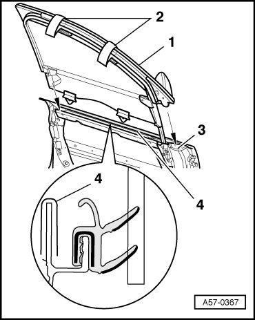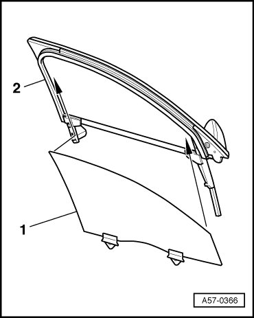 - When removing assembly carrier - 2 - or door window, cover - 1 - must be pulled out.