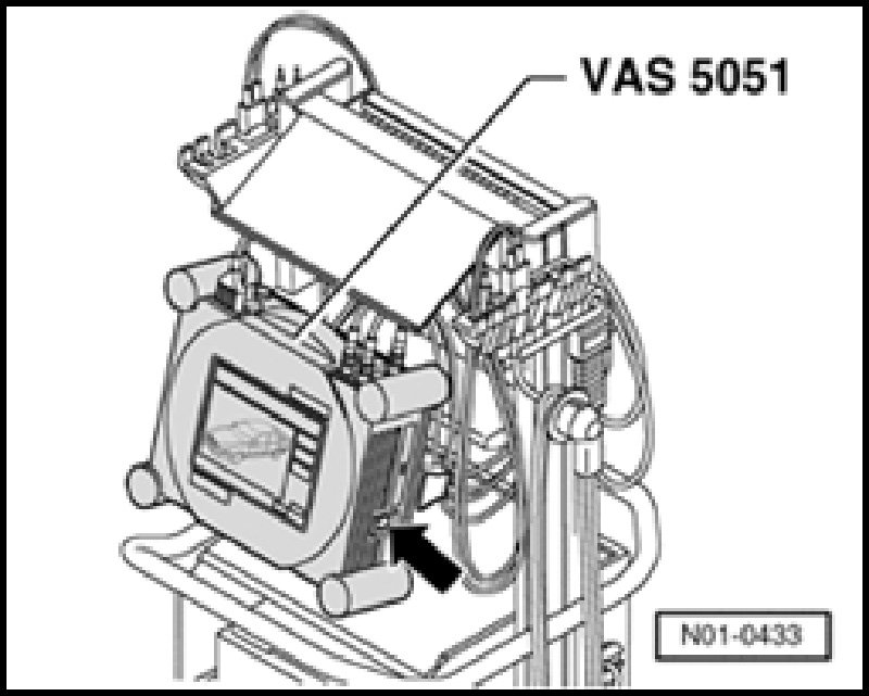 - Connect the VAS 5051/5a diagnostic cable connector to diagnostic connection.
