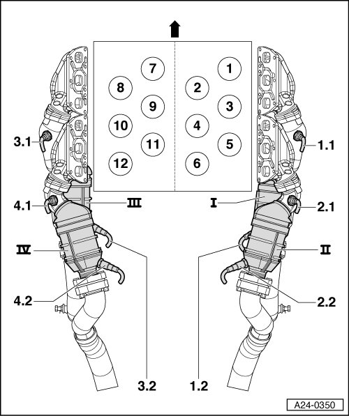 IV - Primary catalytic converter for cylinders 10, 11, 12; also referred to as -exhaust bank 4-.