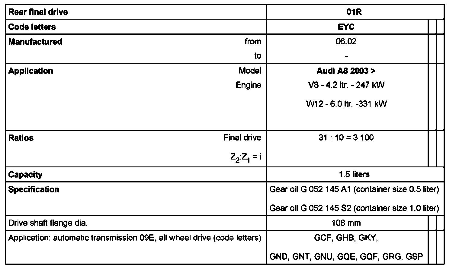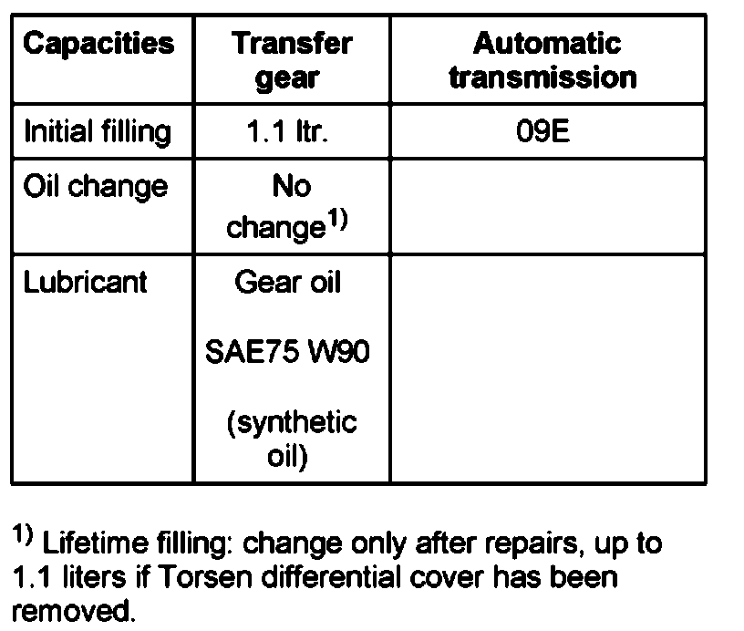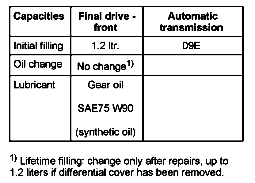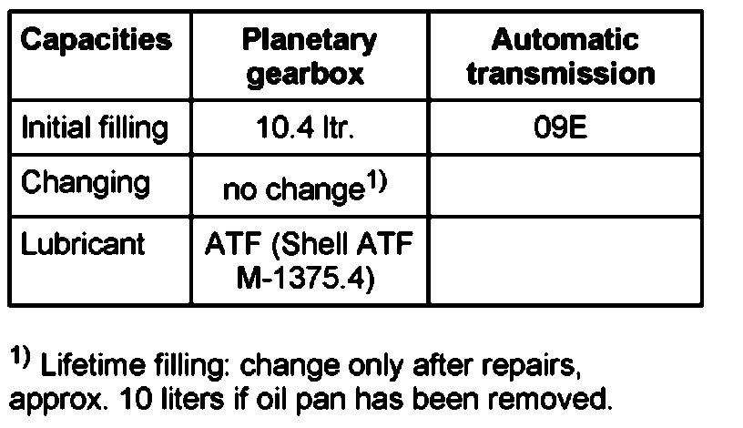 Note: Use only the correct type of ATF (available as a replacement part) for the planetary gearing in automatic transmission ODE. Other oils could cause malfunctions or damage the gearbox.