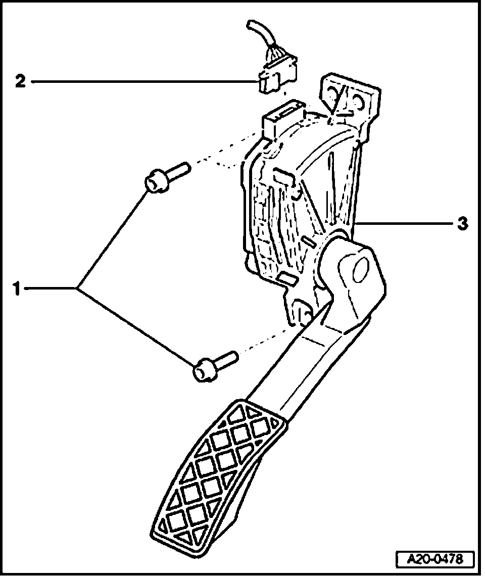 Accelerator pedal module with Throttle Position (TP) sensor-G79- and sender -2- for accelerator pedal position - G185-, removing and installing