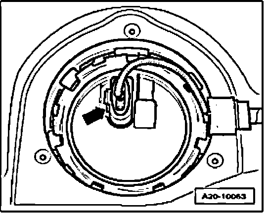 - Disconnect electrical harness connector - arrow - at left locking flange.