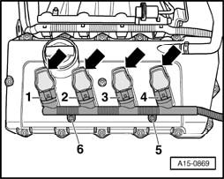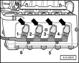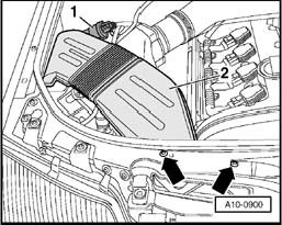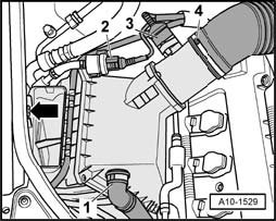 - Disconnect air guide hose - 4 - at Mass Air Flow (MAF) sensor.