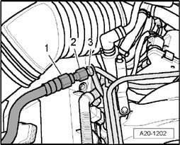 - Disconnect hose - 1 - to Secondary Air Injection (AIR) pump.
