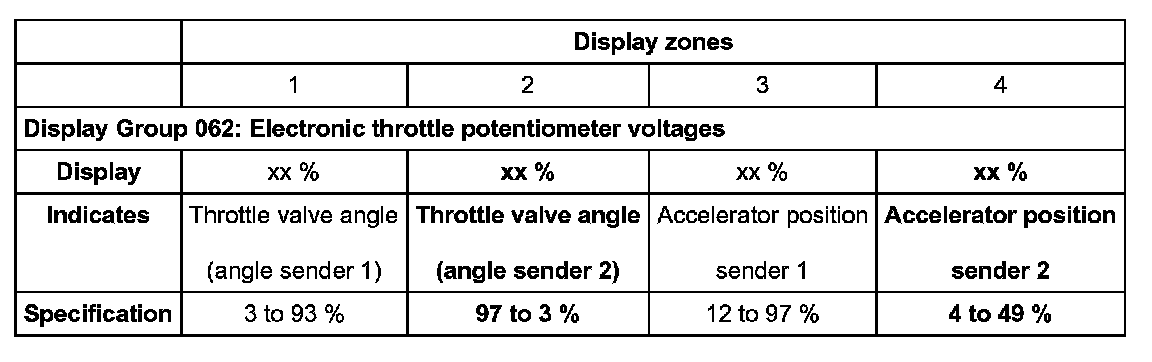 - The reason why the value in display zone 1 rises and the value in display zone 2 falls is because the potentiometers (angle sensors) in the throttle valve control module work in opposite directions.