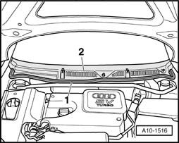 - Remove plenum chamber cover - 2 - and disconnect washer fluid line.