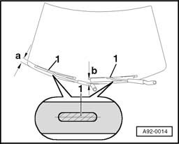 - Check if wiper blades rest against marking -1- on windshield