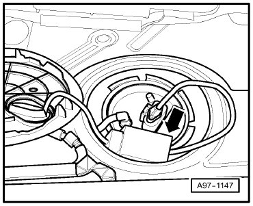 Below rear seat, on fuel pump -Arrow-