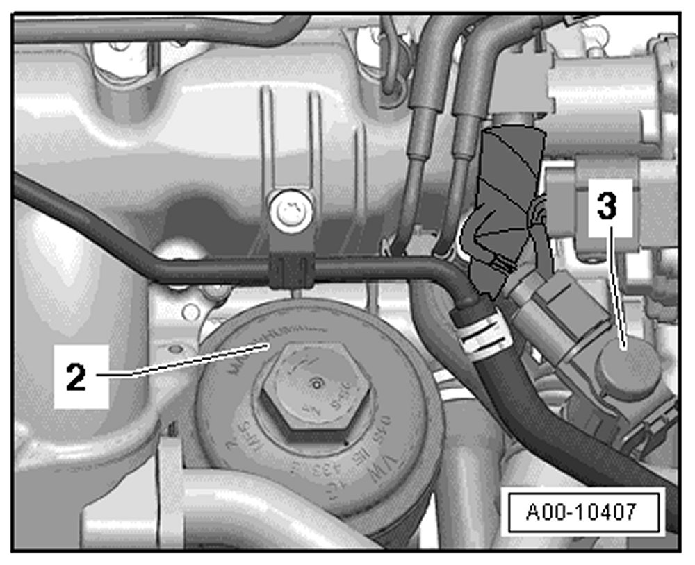 - Open oil filter housing -2- with -3417- or with socket AF 36, e.g. -T10125- and remove oil filter.