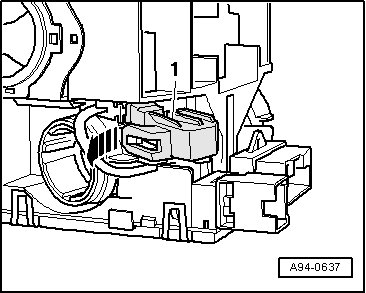 - Release retaining clips in - direction of arrow - and remove ignition key removal lock safety switch electrical connector - 2 -.