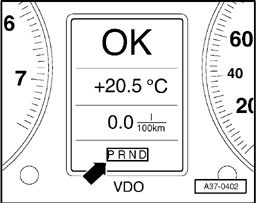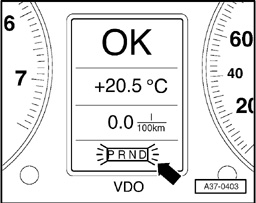 3 - A flashing transmission range indicator in the instrument cluster points to a serious malfunction in the transmission (arrow). The condition is critical to safety or for the transmission.