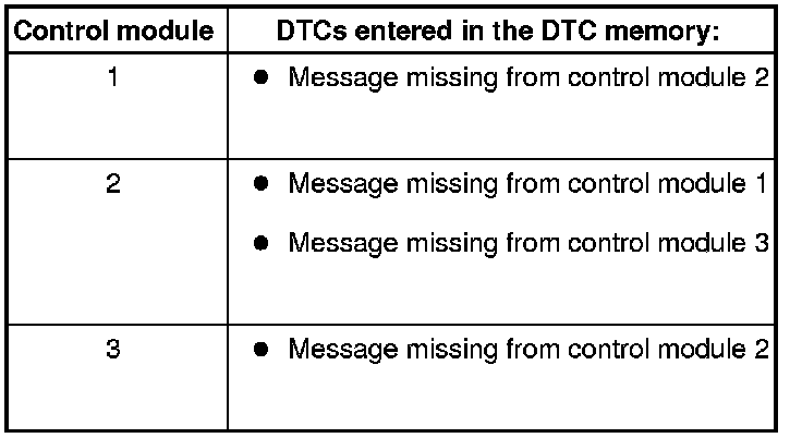 Based on the DTCs entered in the DTC memories, you can see that control module 1 is not connected to control modules 2 and 3.