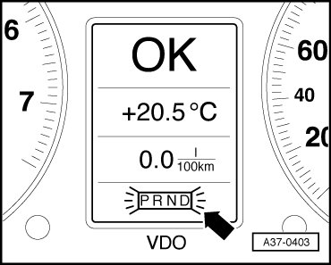 3 A flashing transmission range indicator in the instrument cluster points to a serious malfunction in the transmission - arrow -. The condition is critical to safety or for the transmission.