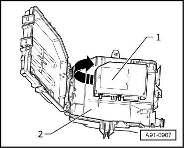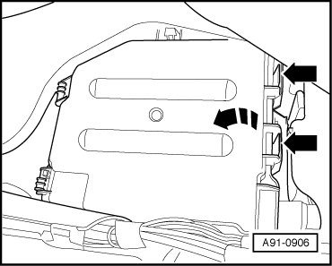 • If control module is replaced, select "Replacement" function for appropriate control module in "Guided Fault-Finding" routine. Use the Vehicle Diagnosis, Testing and Information System (VAS 5051) to do so.