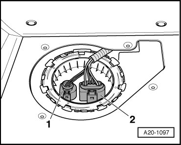 - Disconnect electrical harness connector - 2 - at left locking flange.