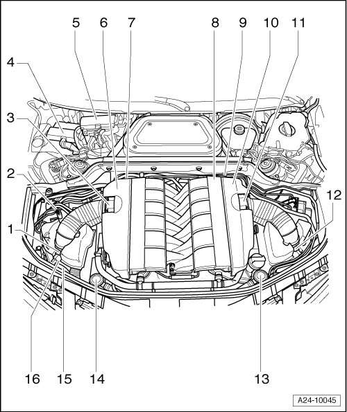The intake channels cross in the center of the intake manifold. The Mass Air Flow (MAF) sensor (-G70-) on the left side (as seen in driving direction) therefore measures the intake air mass for cylinder bank 1 on the right side (as seen in driving direction). The same applies to the Intake Air Temperature (IAT) sensor (-G42-).