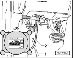 Location: The Data Link Connector (DLC) for Vehicle Diagnosis, Testing and Information System VAS 5051 is located in drivers side foot well.