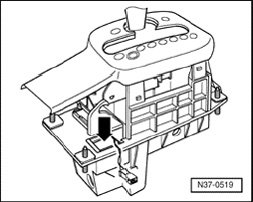 Location: Tiptronic Switch F189 is integrated into circuit board of symbol insert, which is located in shift mechanism cover.
