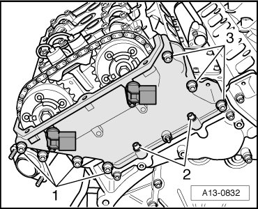 First pass: Bolts 2, 3 and 4 5 Nm