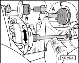 - After loosening threaded connection, drive shaft - A - can be pushed through socket - E - into drive pinion.