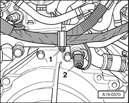 - Disconnect the Engine Coolant Temperature (ECT) Sensor G62 electrical harness connector - 1 -.