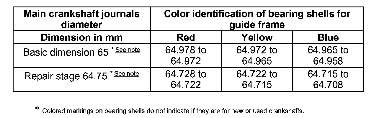 ^ Allocate bearing shells to determined diameter of main crankshaft journals according to the following table.