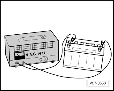 The battery should be charged using a battery charger (VAG), for example (VAG 1471), (VAG 1648) or (VAS 1974).
