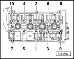 Tighten cylinder head bolts in two stages in sequence shown as follows: