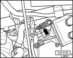 Fig. 7 Location of Engine speed (RPM) sensor -G28- with 3-pin connector