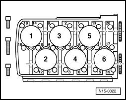Tighten cylinder head bolts in 4 stages in sequence shown as follows:
